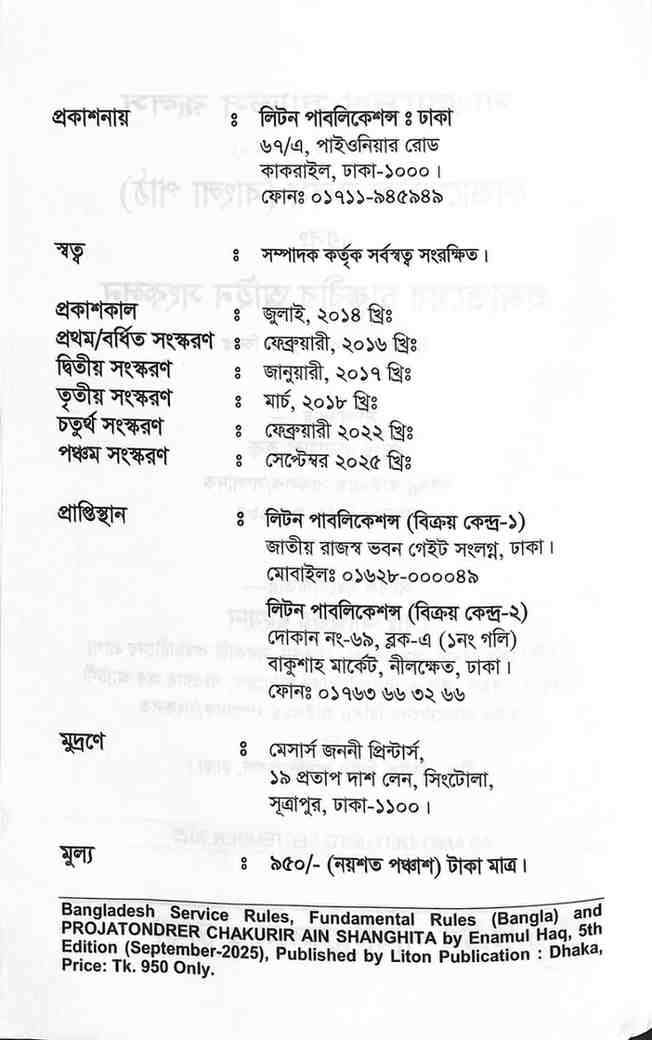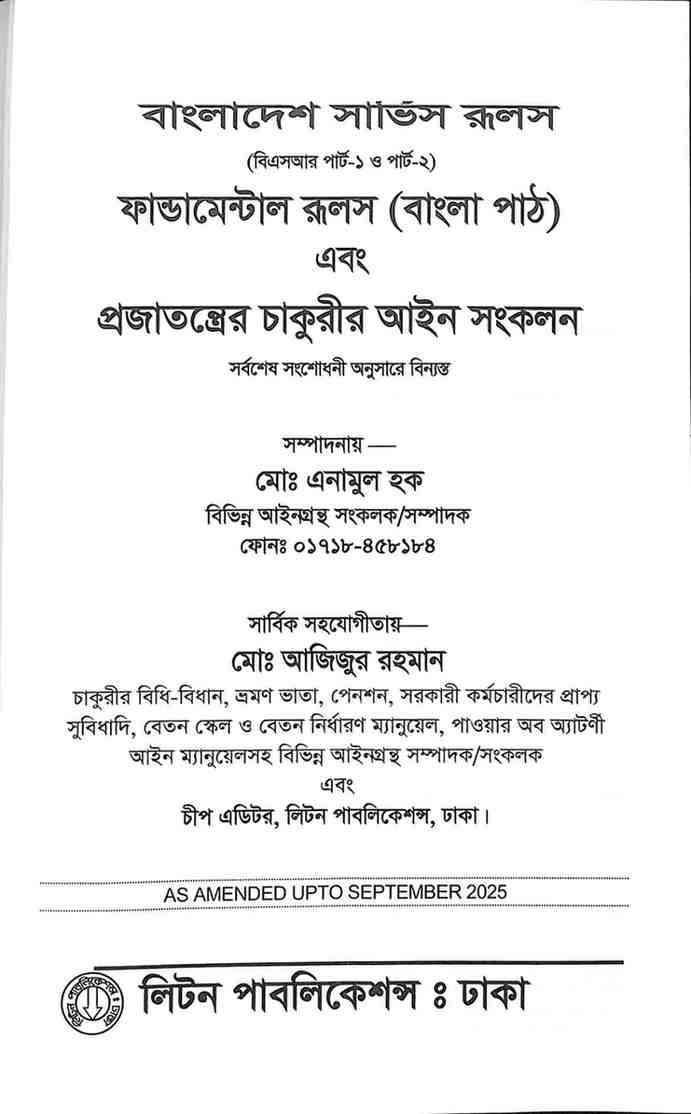 | Title | বাংলাদেশ সার্ভিস রুলস (B.S.R) পার্ট-১ ও পার্ট-২ ফান্ডামেন্টাল রুলস (বাংলা পাঠ) এবং প্রজাতন্ত্রের চাকরির আইন সংকলন |