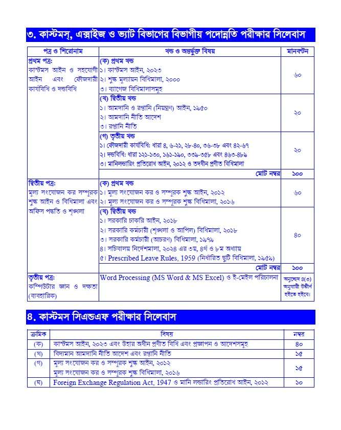 Jan 01, 2026কাস্টমস এবং ভ্যাটের কর্মকর্তা কর্মচারীদের চাকরি স্থায়ীকরণ, প্রমোশন এবং কাস্টমস ও ভ্যাট সংক্রান্ত দৈনন্দিন