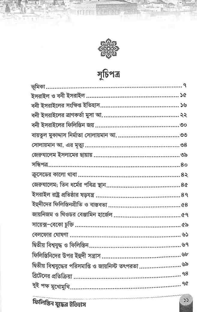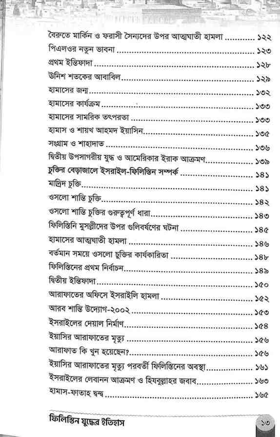 এই বইটি ইসরাইল-ফিলিস্তিন সংঘাতের উৎপত্তি থেকে বর্তমান সময় পর্যন্ত গুরুত্বপূর্ণ ঘটনাবলীর ধারাবাহিক বিশ্লেষণ তুলে ধরে। ইতিহাস, রাজনীতি ও ভূ-রাজনৈতিক বাস্তবতার সমন্বয়ে এটি একটি গুরুত্বপূর্ণ রেফারেন্স গ্রন্থ।