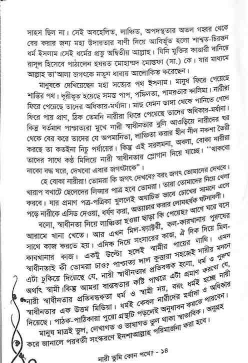 বর্তমান বিশ্বের সামাজিক অবক্ষয়, নারী স্বাধীনতার নামে বিভ্রান্তি ও নৈতিক সংকটের প্রেক্ষাপটে “নারী তুমি কোন পথে?” একটি অত্যন্ত সময়োপযোগী ইসলামিক গ্রন্থ।