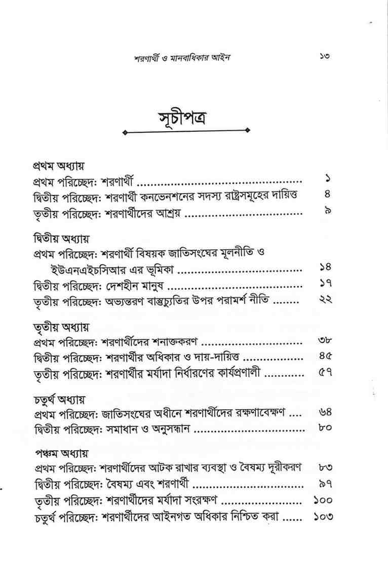 শরণার্থী ও মানবাধিকার আইন (Refugee & Human Rights Law) বইটি আন্তর্জাতিক মানবাধিকার ও শরণার্থী আইন বিষয়ে একটি নির্ভরযোগ্য রেফারেন্স গ্রন্থ। এতে 1951 Refugee Convention, মানবাধিকার নীতিমালা, রাষ্ট্রের দায়িত্ব এবং শরণার্থীদের সুরক্ষা বিষয়ে বিস্তারিত আলোচনা করা হয়েছে। আইন শিক্ষার্থী, মানবাধিকারকর্মী, গবেষক ও নীতি নির্ধারকদের জন্য বইটি অত্যন্ত উপযোগী।