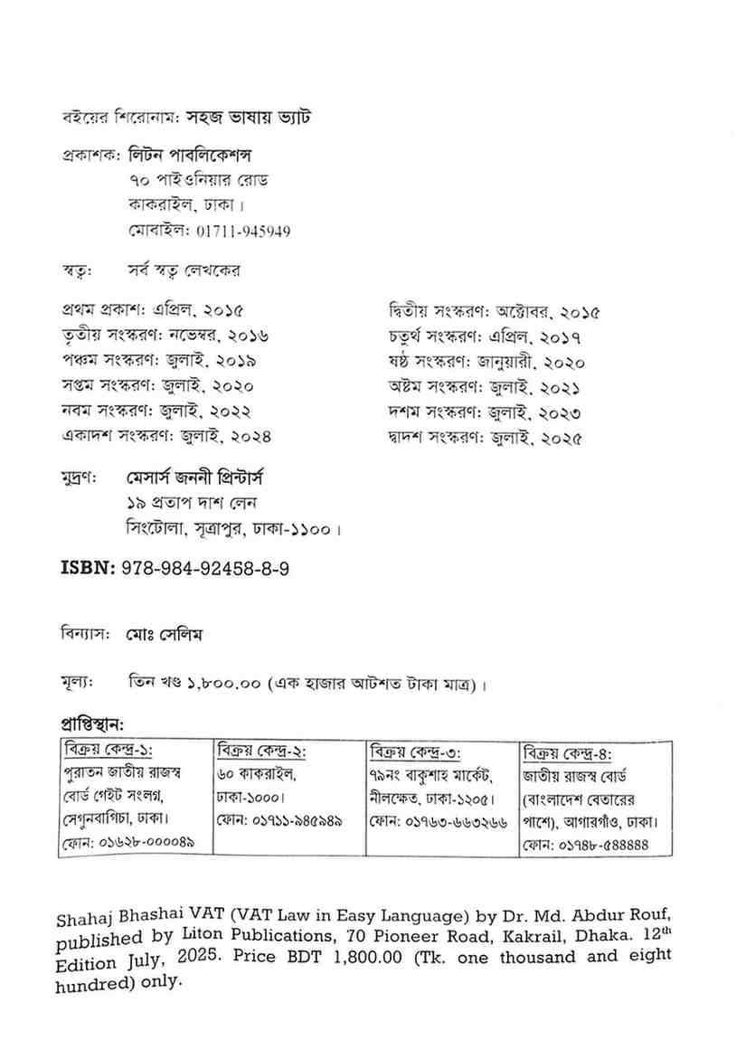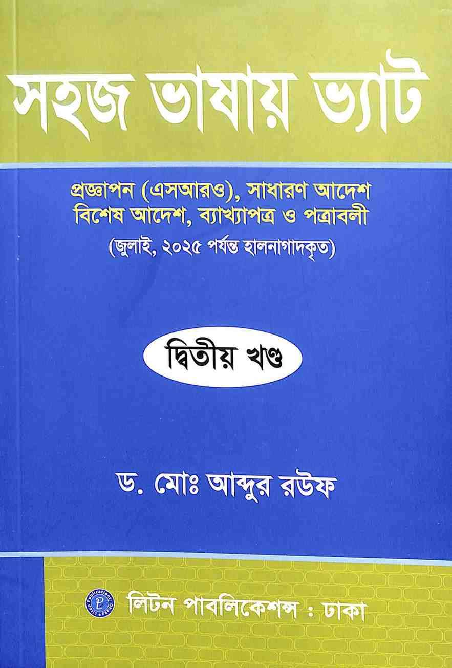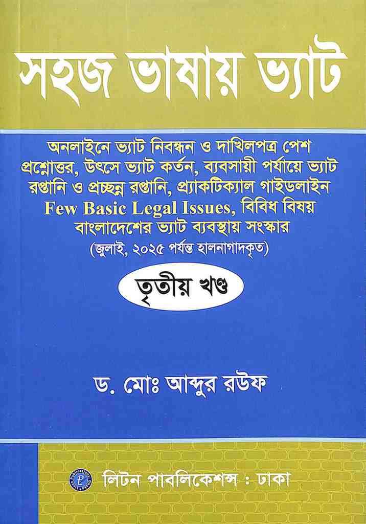 ড. মোঃ আব্দুর রউফ স্যারের “সহজ ভাষায় নতুন ভ্যাট আইন” বই-এর দ্বাদশ সংস্করণ ২০২৫ সালের অর্থ আইন এবং এসআরওসমূহের আলোকে আপডেট আকারে ৩ খণ্ডে প্রকাশিত হয়েছে, আলহামদুলিল্লাহ।